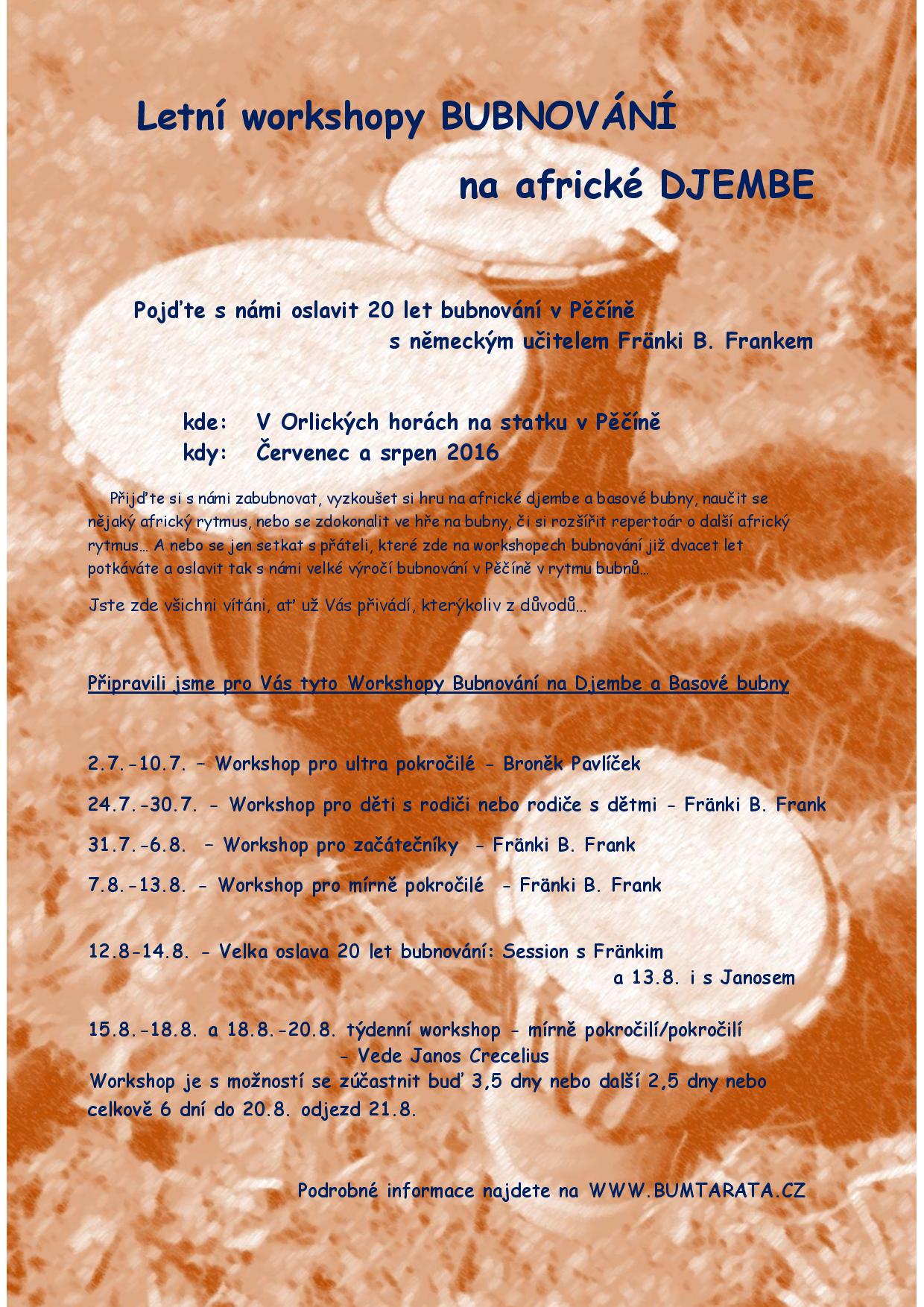 12.8–14.8.2016 bude Velka oslava 20 let bubnování (1996 jsme začali s prvním bubenickým kurzem)